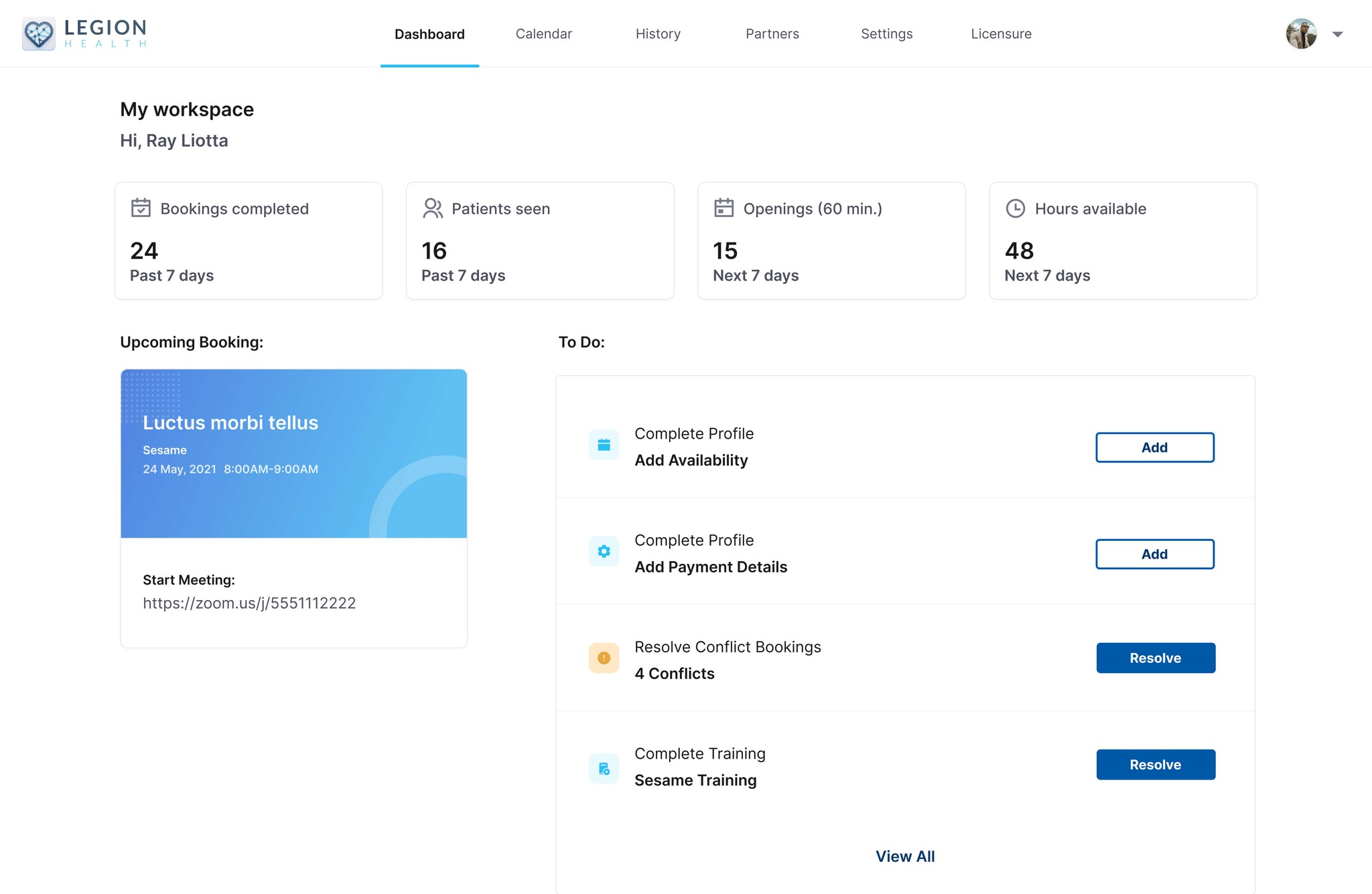 Retain clinicians not yet seeing patients on Legion Health by providing valuable experiences