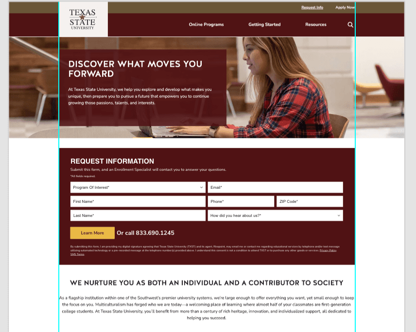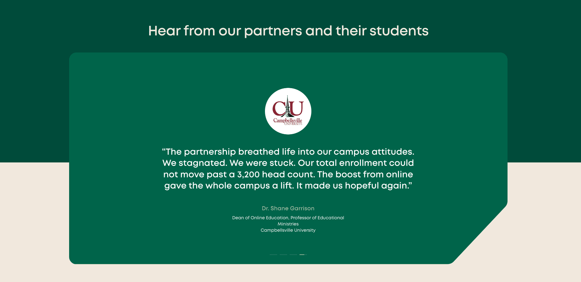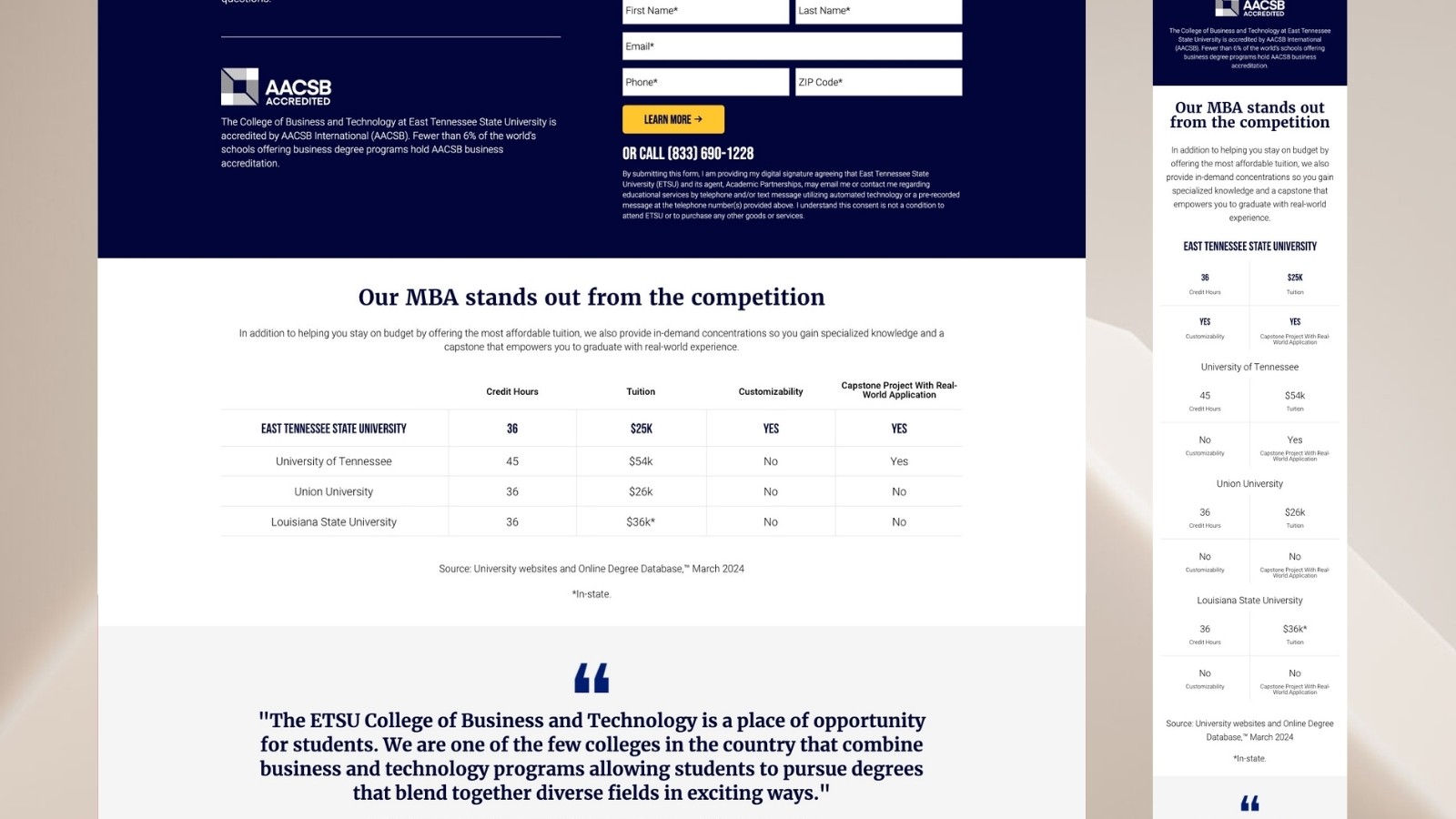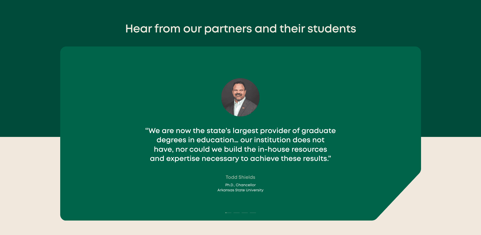 Optimizing student enrollment experiences by designing and testing partner site and landing page features to drive conversions for workforce-focused online programs.